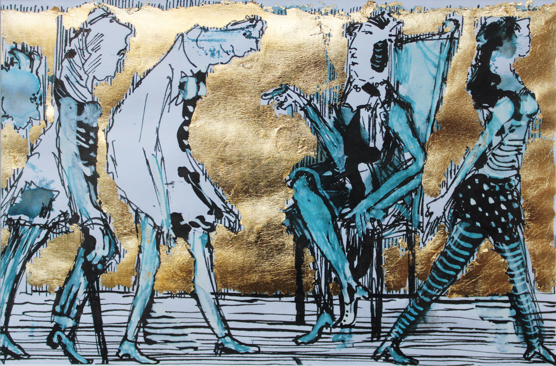 Ich freue mich sehr, an der jurierten Ausstellung mit drei Bildern vertreten zu sein; u.a mit oben gezeigtem Bild: »Macht« | Tuschzeichnung auf Papier, leicht lasiert, teils Goldauflage | 2024 | 9,5 x 14,5 cm | Foto: Annett Schauß | Blatt aus der Serie NOTIZBUCHBLÄTTER | 2024 (insges. 15 Blatt)
